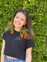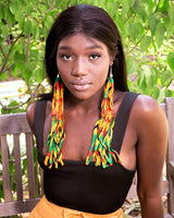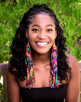 Our "So extra" earrings are made out of African print fabric with a surgical steel hooks.